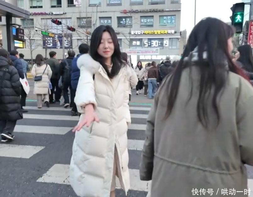 彼时正值韩国严冬,寒风凛冽,她却为还原韩剧里那份轻盈灵动的美感,内搭一条垂感极佳的米色修身长裙,连基础保暖的光腿神器也未使用。不止外表用心,她所传递的情绪能量同样饱满而真诚。